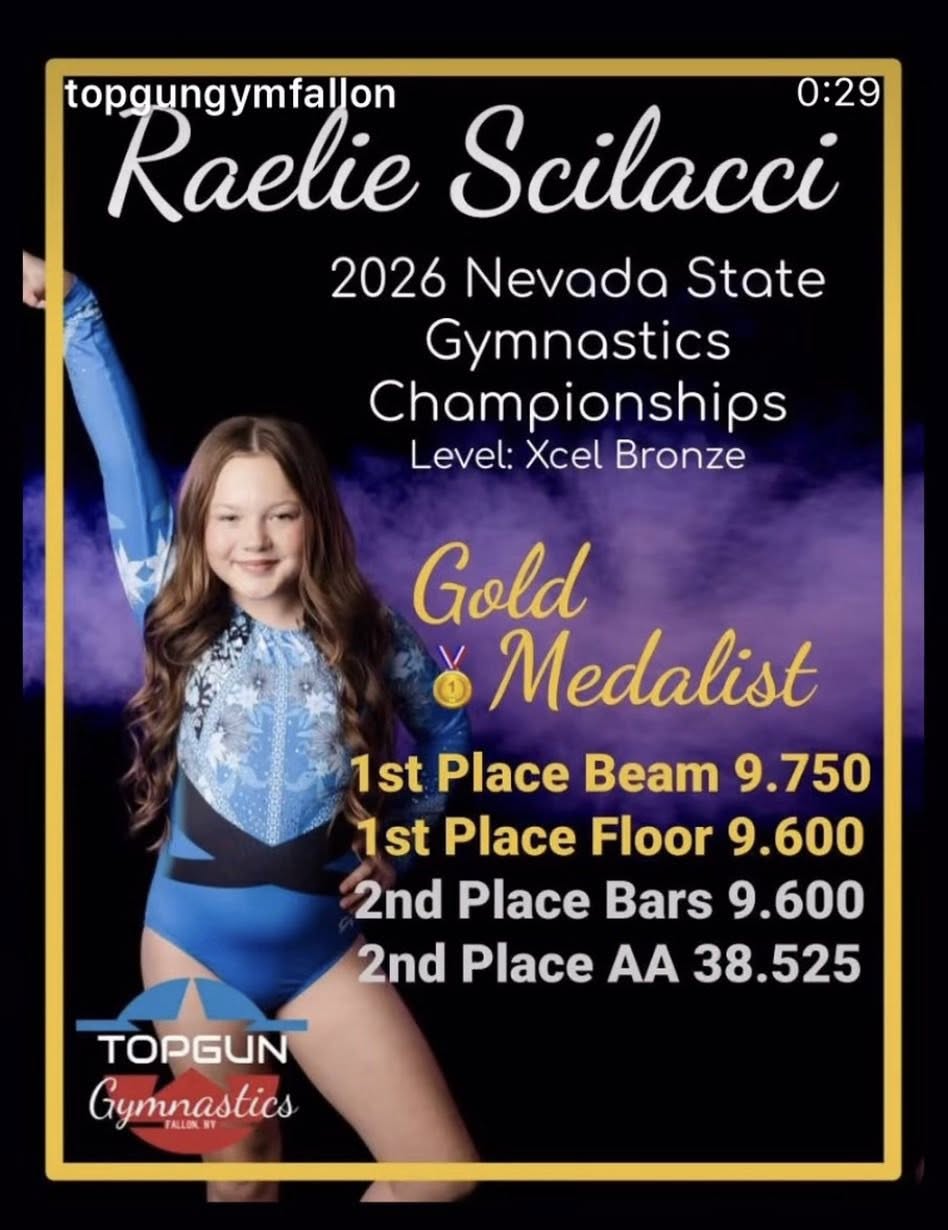 Two Pershing County Middle School gymnasts delivered standout performances at the 2026 Nevada State Gymnastics Championships, bringing home multiple top finishes in the Xcel Bronze division.